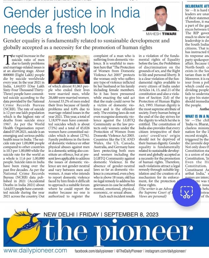 SC Lawyer Mahesh Tiwari points Men's Sufferings on International Men's Day